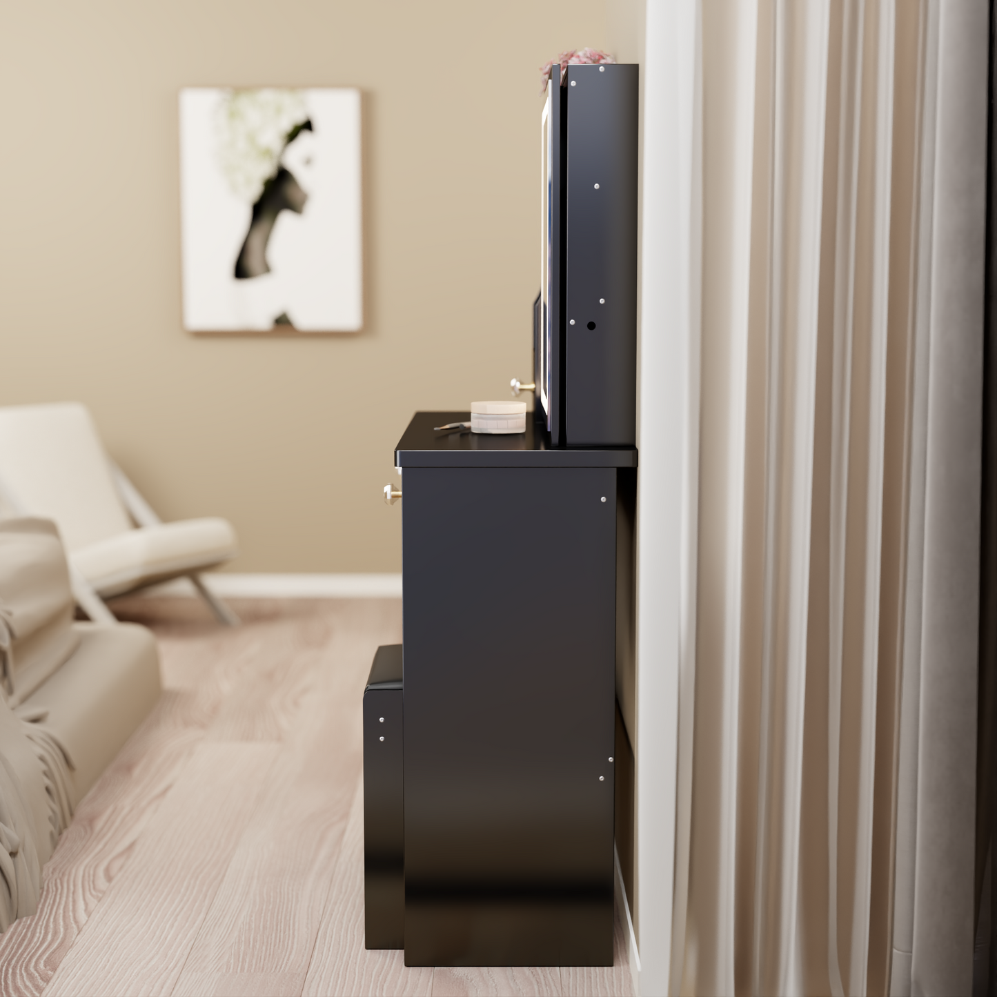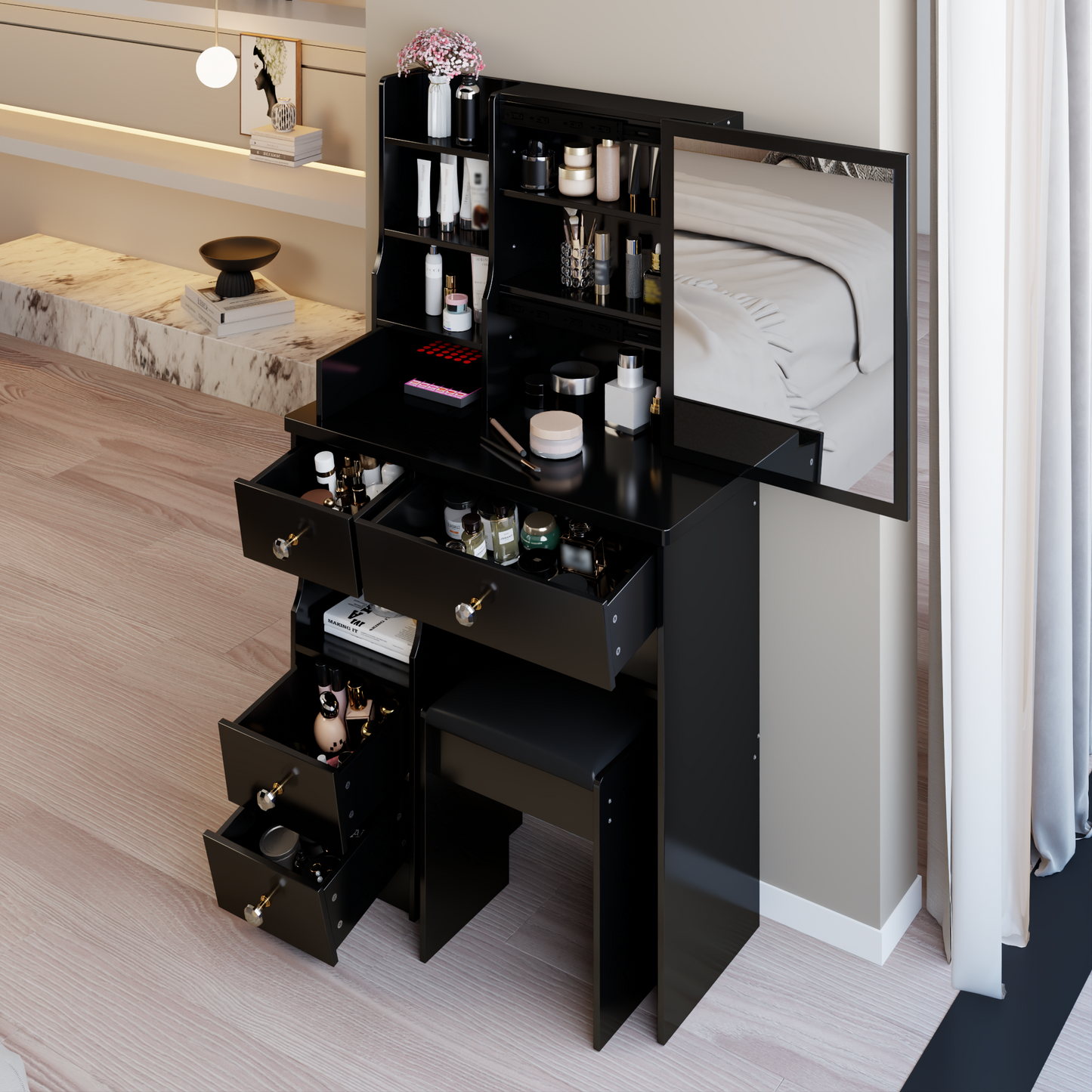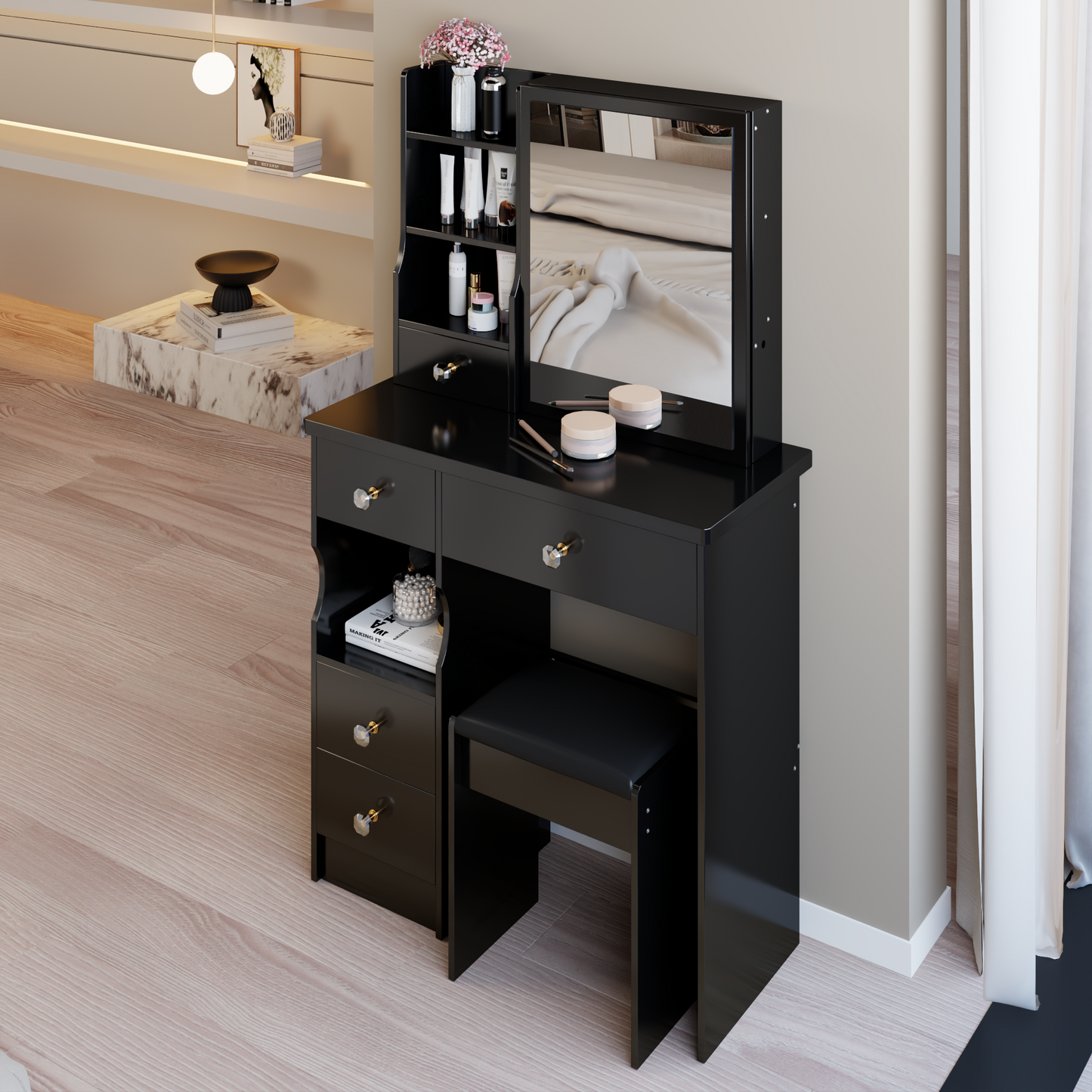 - [Including a dressing table and a cushioned dressing stool]: This is a dressing table set, which includes a dressing table and a cushioned stool. You will no longer need to make additional purchases. This will greatly save you time and delivery costs.