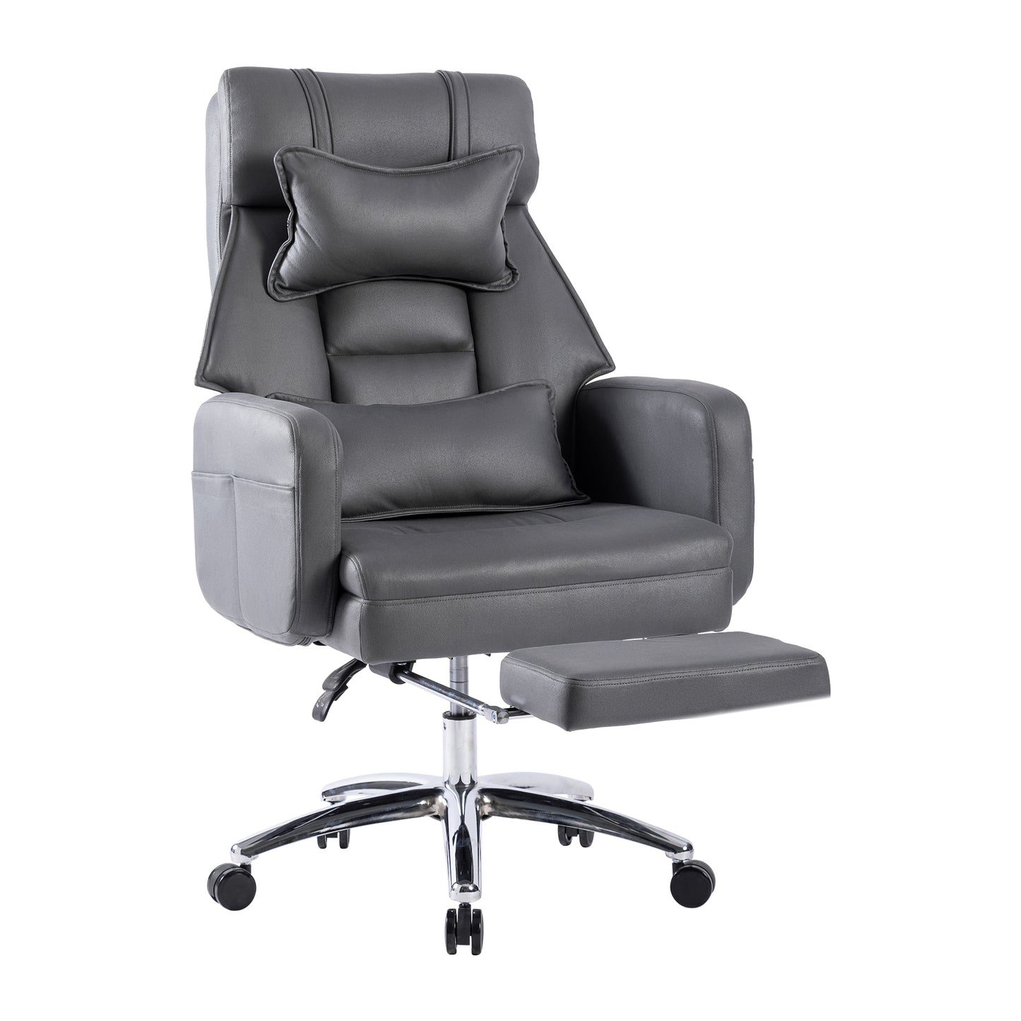 Swivel Ergonomic Office Chair, Technology Leather High Back Office Chair with Lumbar Support Headrest, Sedentary Comfortable Boss Chair, 155° Reclining Computer Chair (Color : DARK GREY)