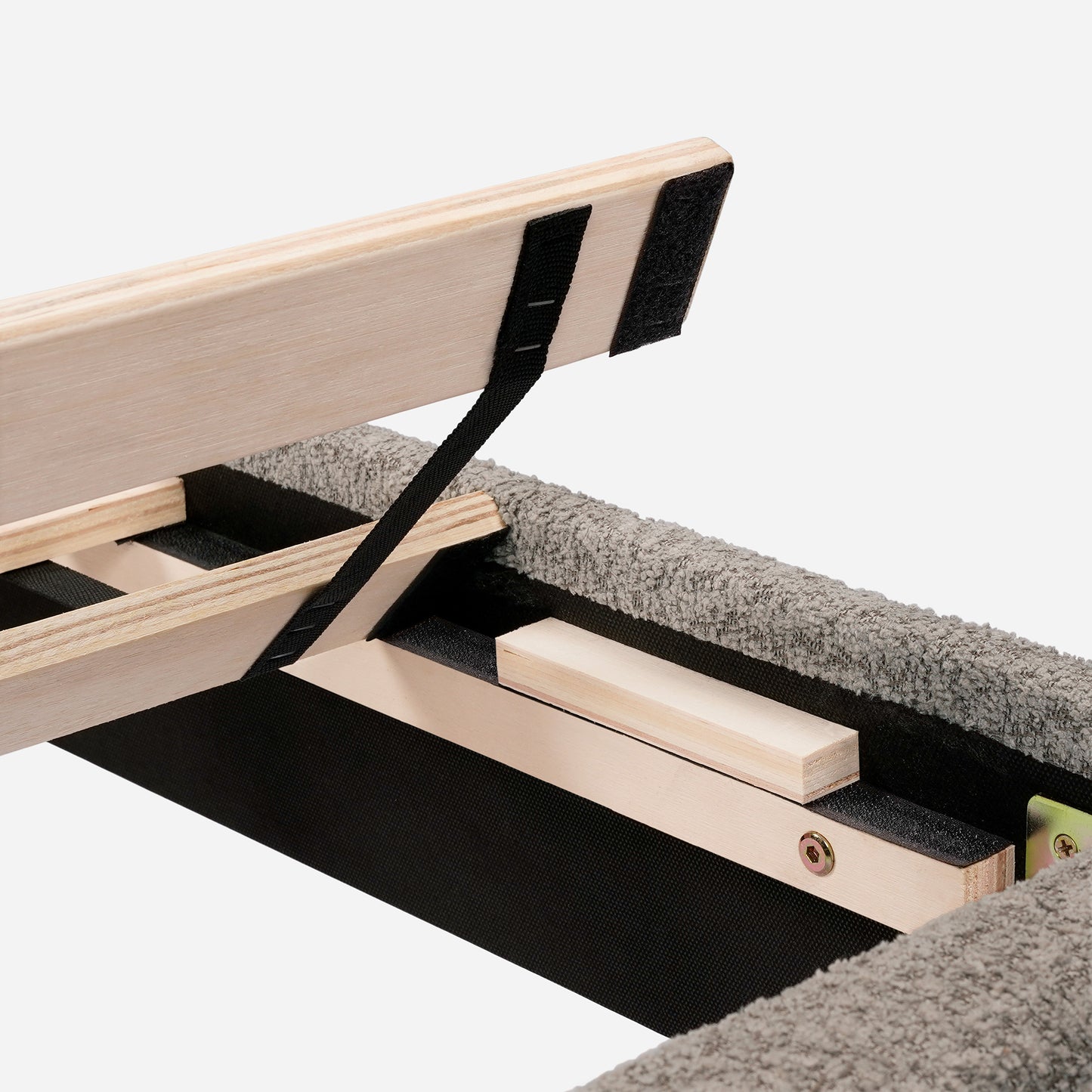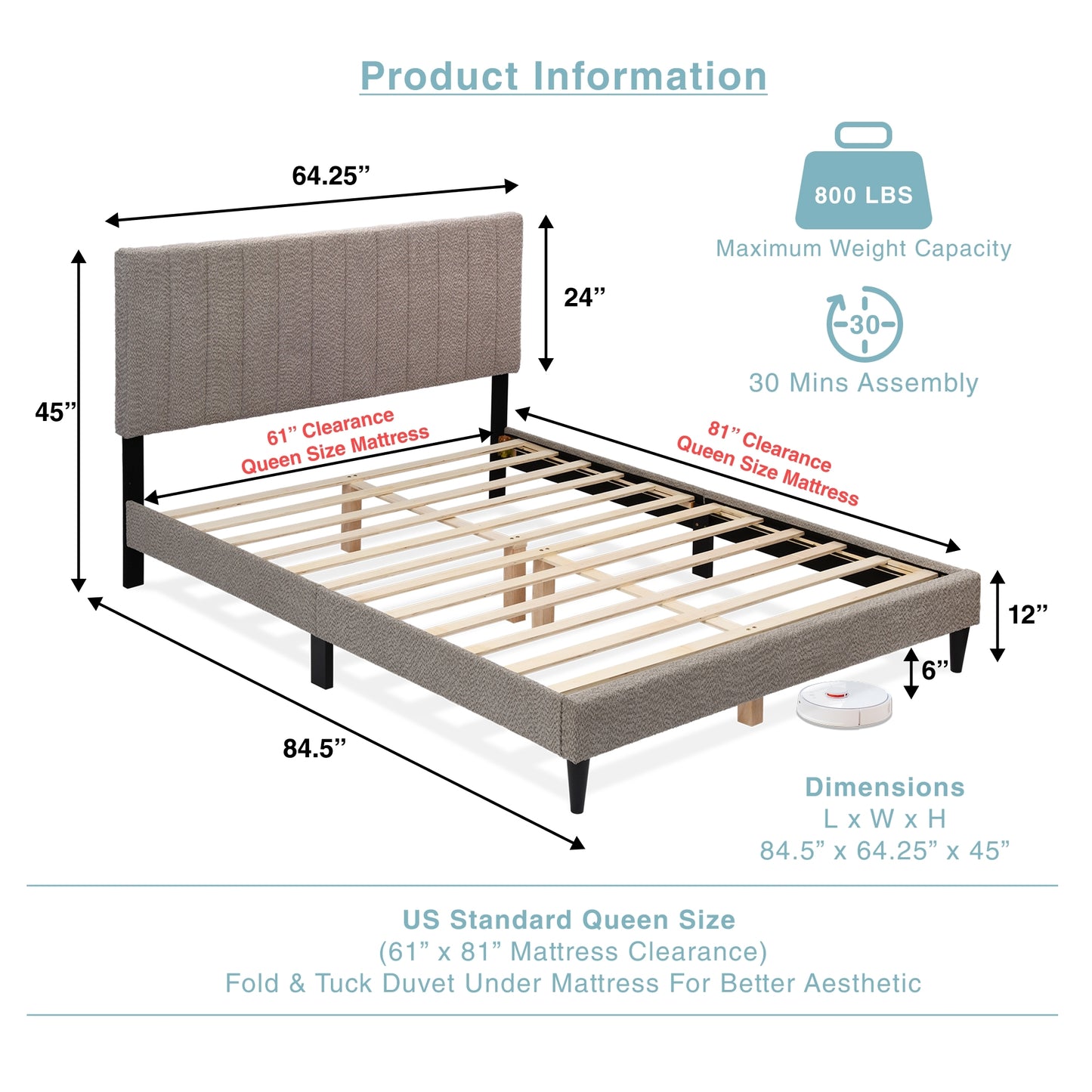 - Upholstered bed frame queen includes convenient Hook-And-Loop Fastener & Easy Assembly: Designed with end blocking for easy slat attachment and installation, ensuring a secure fit, simple assembly, and enduring performance.