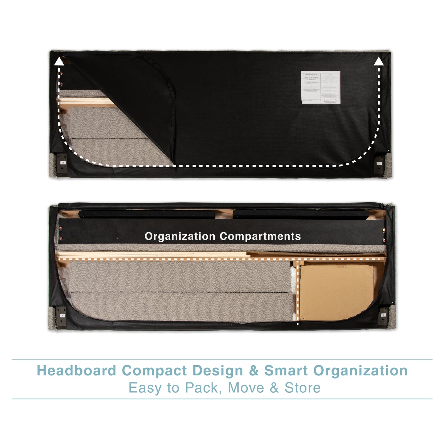 - Designed for easy assembly and disassembly queen size bed frames with headboard, The headboard includes a storage compartment to conveniently organize and store bed frames and parts. Queen bed frame no box spring needed.
