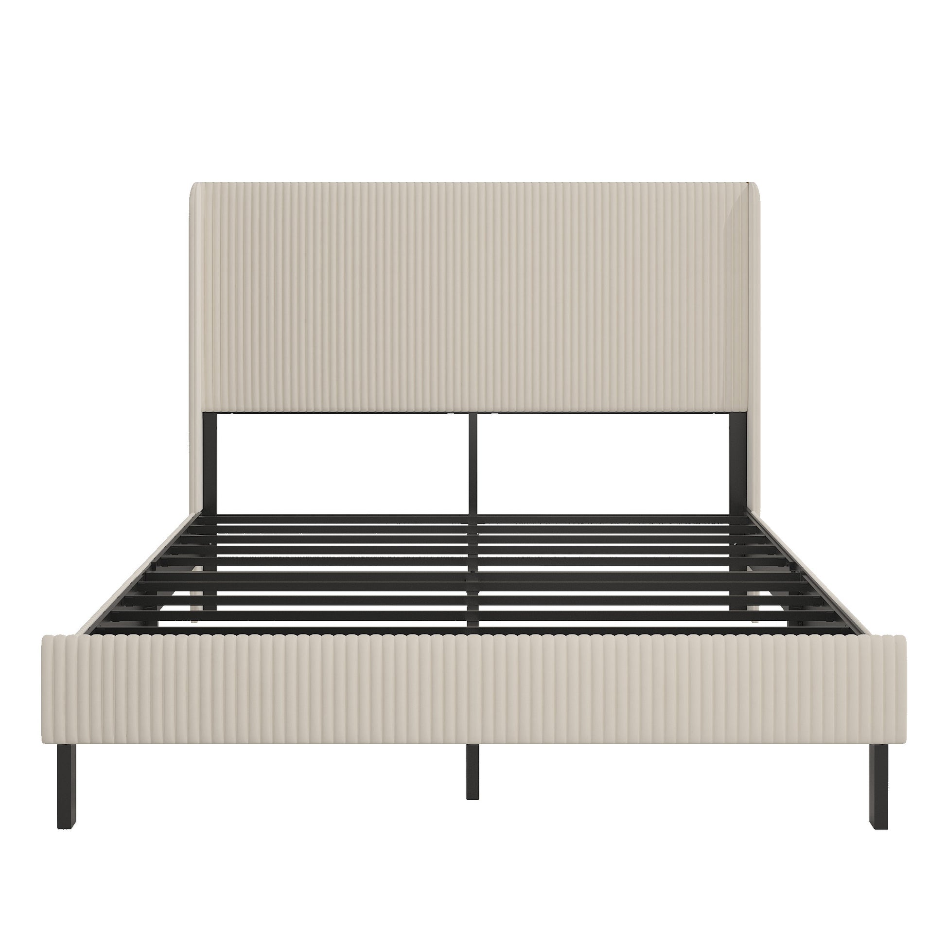 Modern Beige Queen Size Platform Bed with Metal Frame and Charging Station