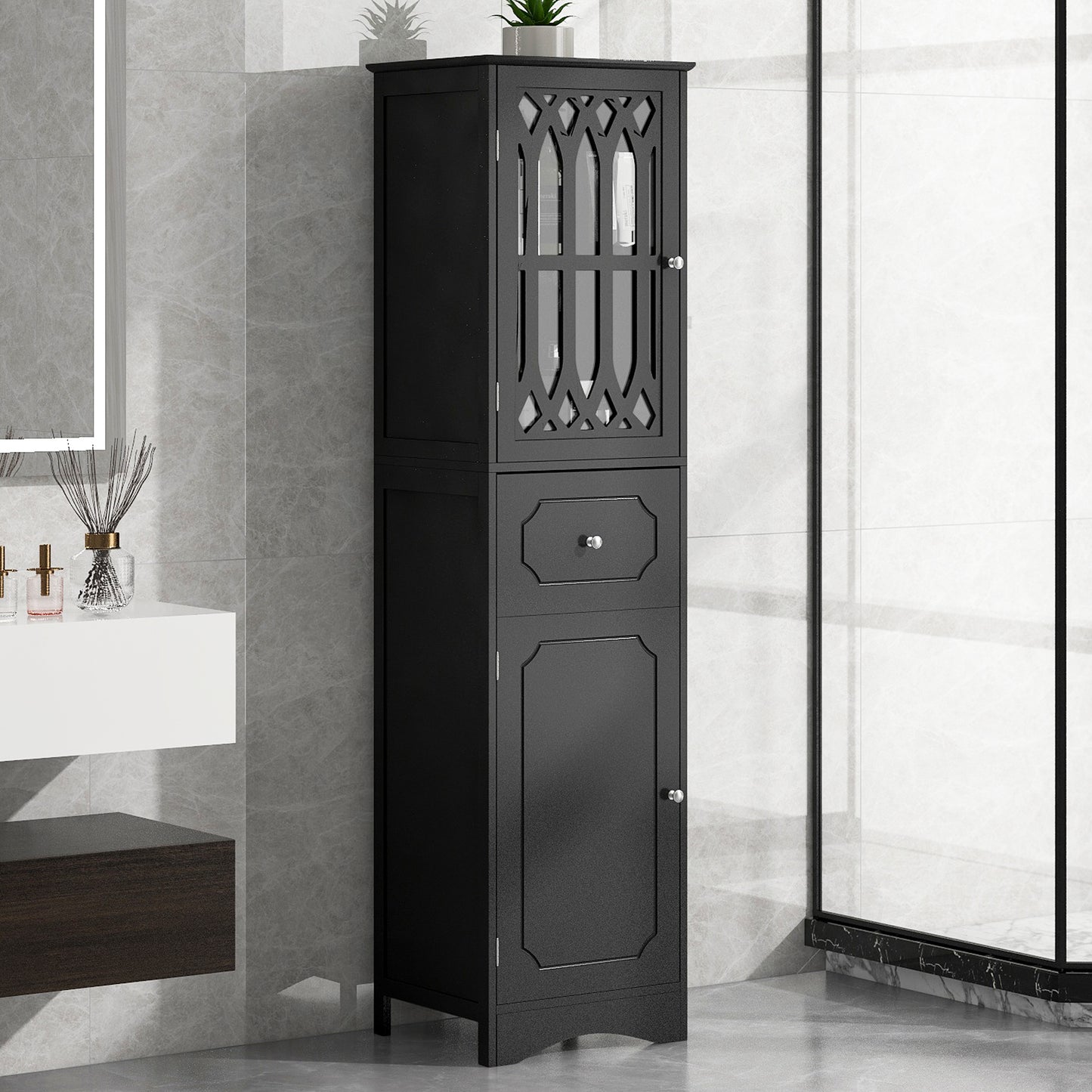 Tall Bathroom Cabinet, Freestanding Storage Cabinet with Drawer and Doors, MDF Board, Acrylic Door, Adjustable Shelf, Black