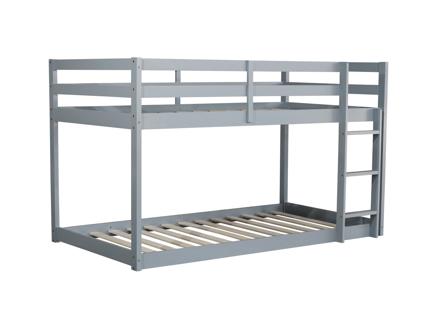 Solid Wooden , Solid Rubber Wooden Twin over Twin Loft Bed with Ladder ,Upper and Bottom Bed Platforms crafted with Strengthened Slats ,Grey
