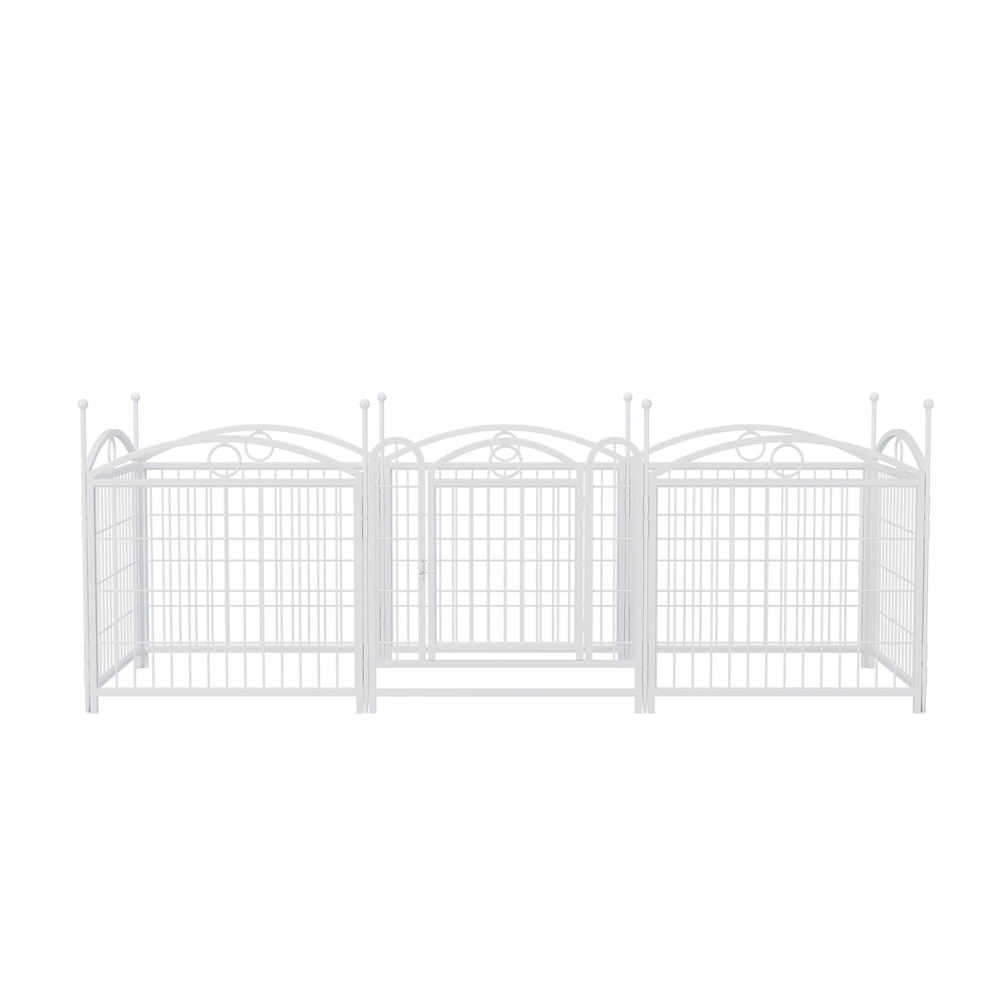 The dog fences for the yard take in new technology that crafted with silver powder-coated on heavy-duty thickened iron, come to be highly rust & corrosion resistant, waterproof and anti UV.