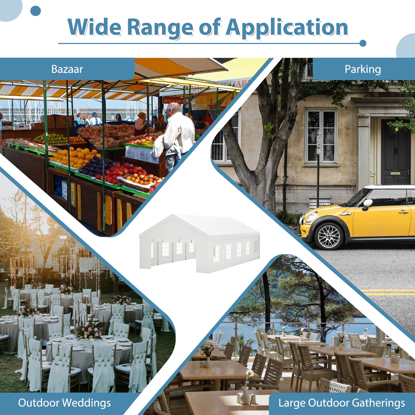 - 【Versatile Usage】This canopy party tent is a multi-functional shelter that grants guests shade and protection from rain;Great for commercial and recreational use; It is the ideal temporary outdoor gathering place for weddings, graduations, picnics, parties, BBQ, and backyard events