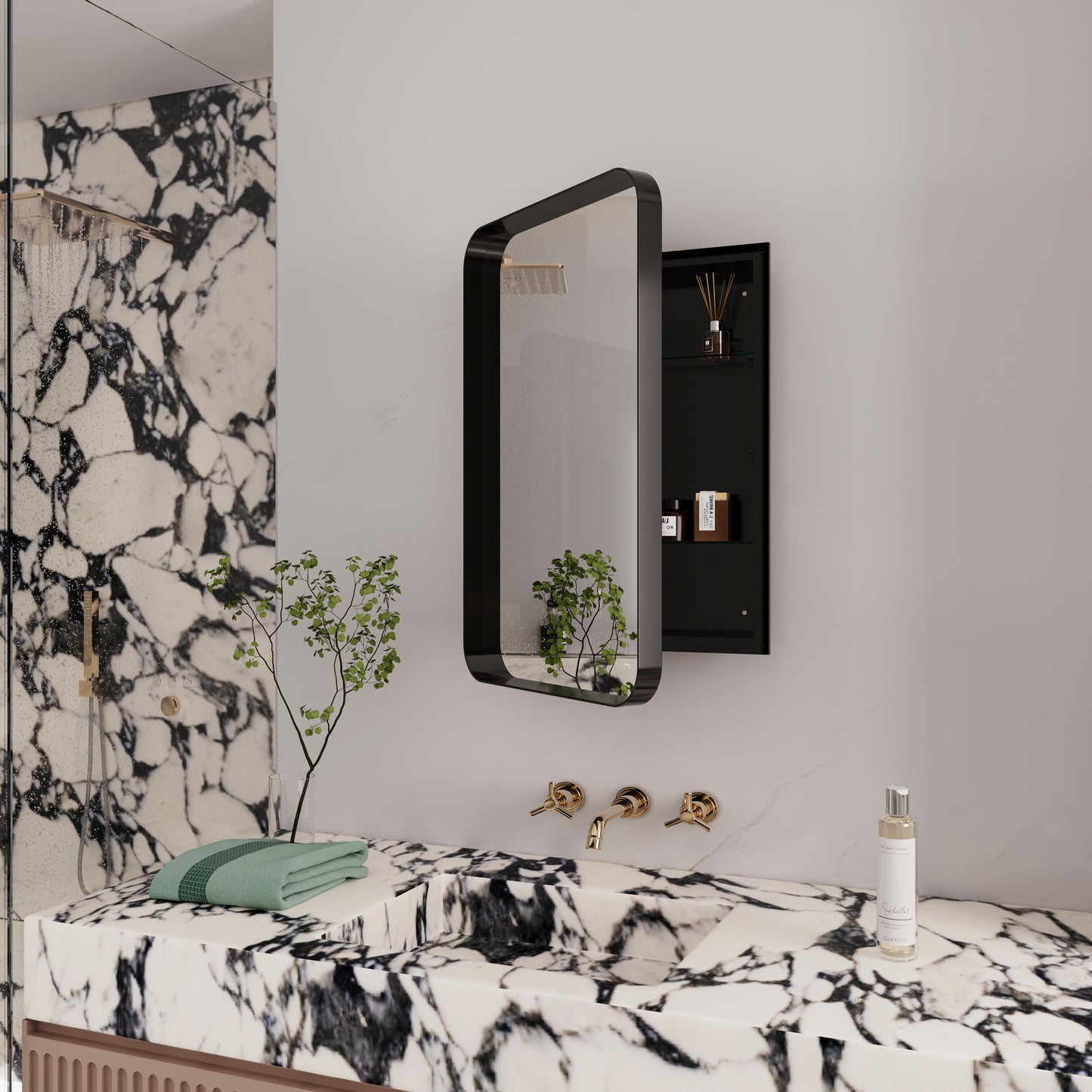 - This medicine cabinet supports embedded and wall mounted installation, providing flexibility that matches your bathroom layout and design. The cabinet can achieve 180 ° reverse installation, suitable for any living space.