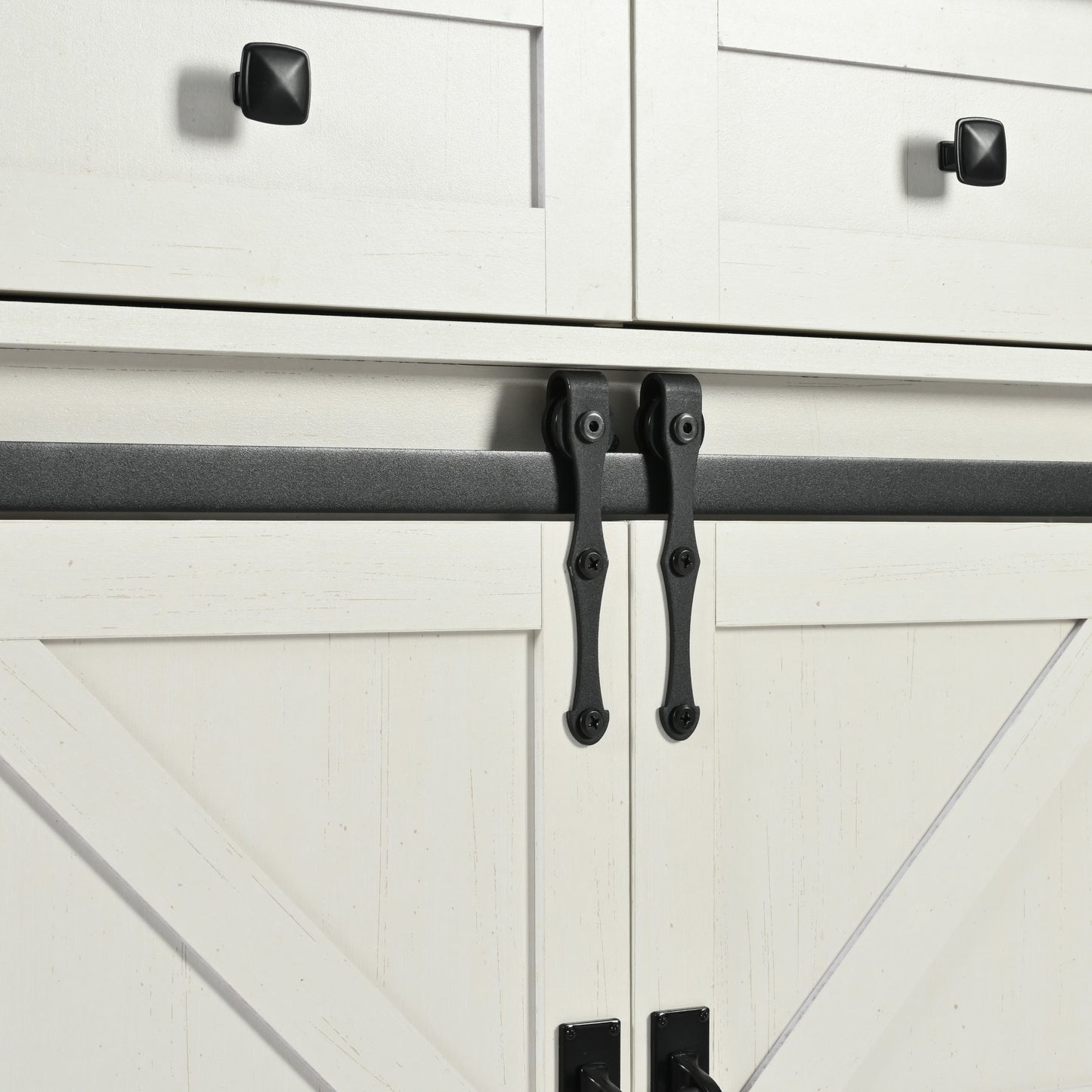 The metal trim and classic Sliding barn door elements add a retro accent, making this kitchen cabinet fancier and allowing it to blend perfectly into your kitchen and dining room.