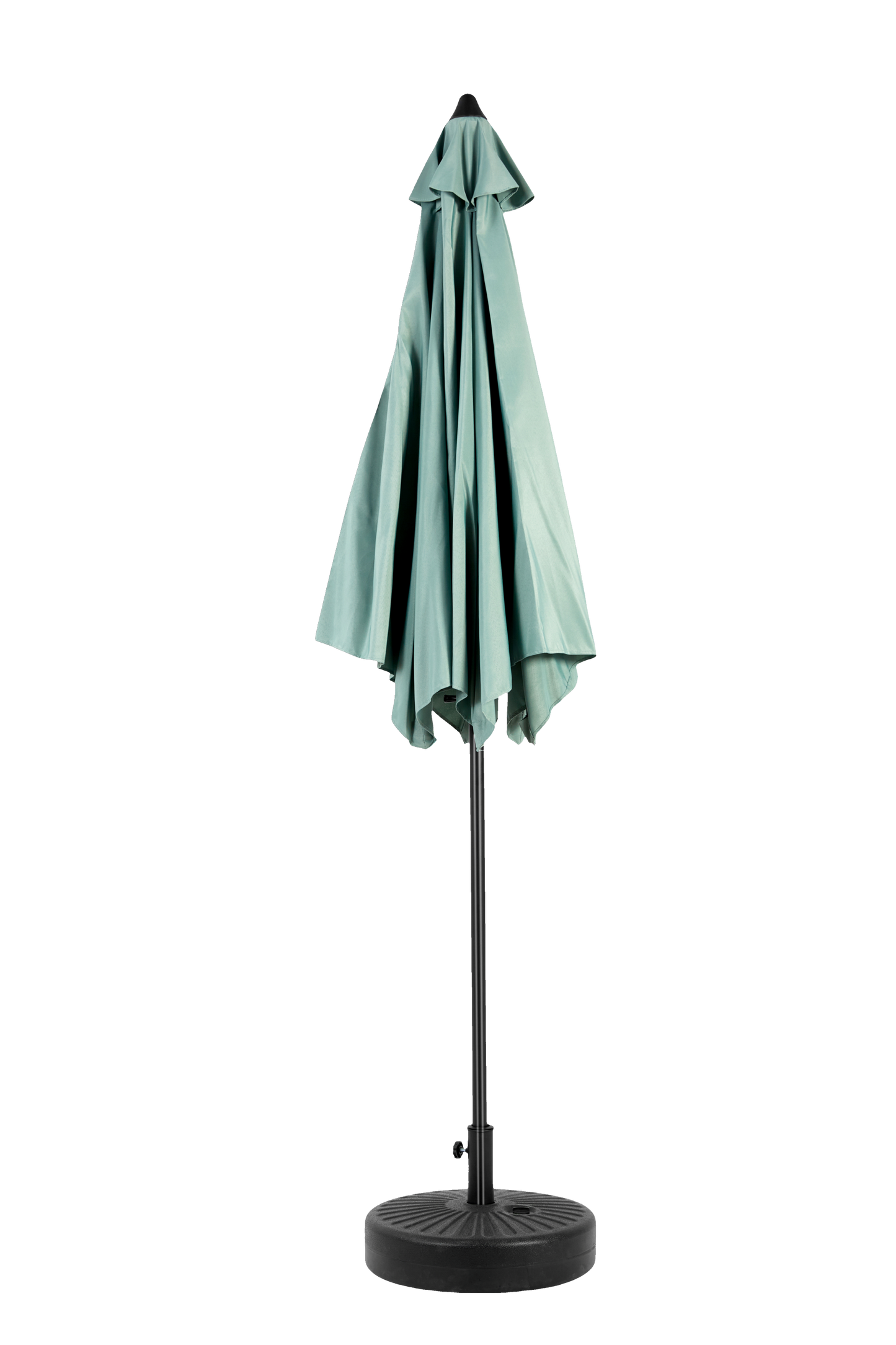 This market umbrella has a crank mechanism, you can easily open and close the umbrella in a few seconds by rotating the crank handle. No base are included and lightweight.