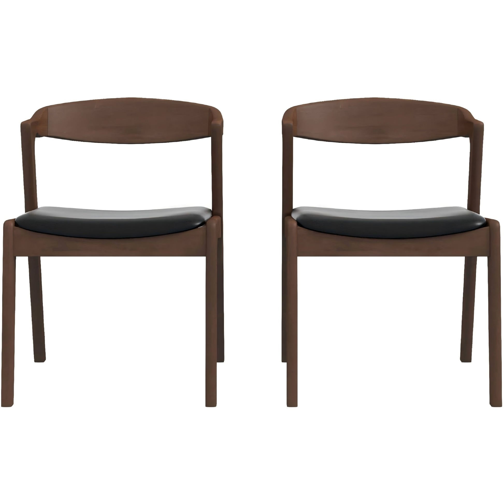 Dakota Mid-Century Solid Wood Dining Chair Set with Black Leather Upholstery Set Of 2