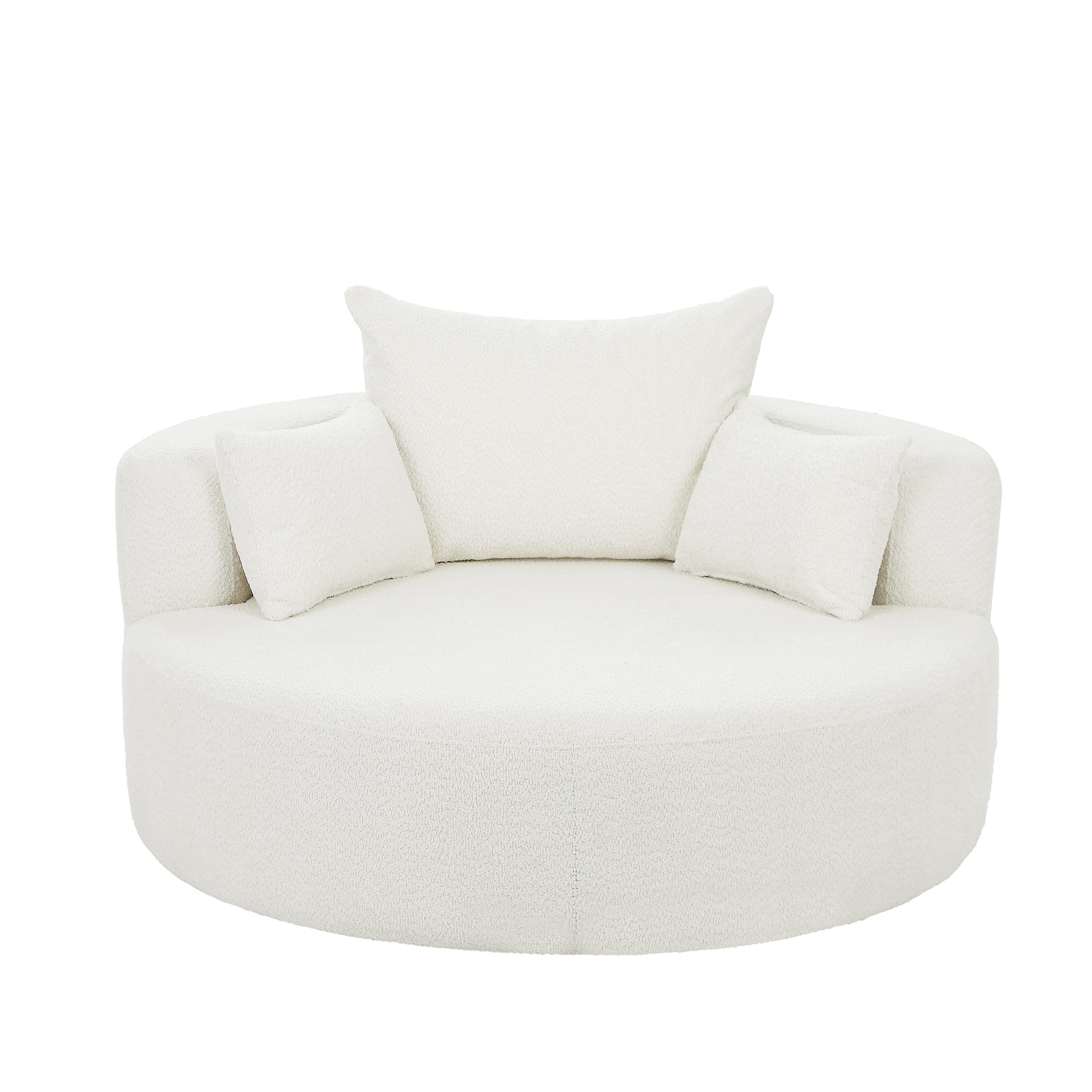 This chair offers a perfect combination of comfort and style. With a 360-degree swivel base, it provides easy movement in any direction. The spacious 36.5-inch seat depth ensures comfortable lounging, while the luxurious chenille fabric is soft yet durable. The removable throw pillows make for easy maintenance, and the chair’s modern circular design adds a sophisticated touch to any space. Despite its ample size, the chair is space-efficient, making it ideal for smaller rooms or apartments. Its versatility and sleek design make it a great addition to any living room, bedroom, or office.